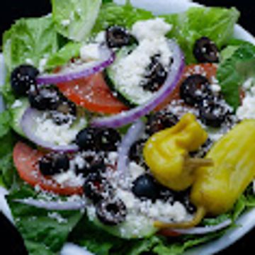 Fresh greens, tomatoes, cucumbers, red onion, black olives, and feta. Served with choice of dressing on the side. Also available as a side salad.