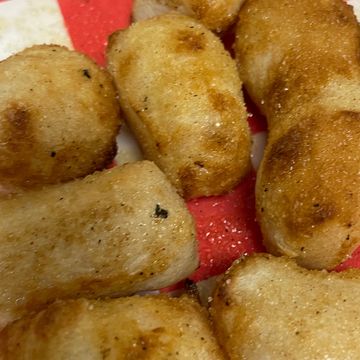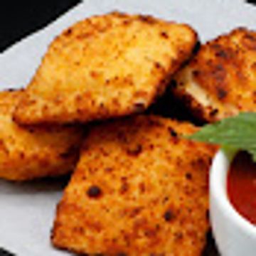 Air-fried ravioli, stuffed with a mixture of cheese and breaded. Available in two sizes.